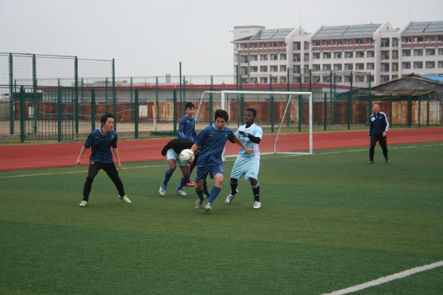 2013年3月20日下午,交运学院组织加纳班留学生与我校足球队在北区体育场开展足球联谊赛。体育部朱老师、交运学院团委书记曾令伟老师、辅导员都志亮老师到场为双方呐喊助威。