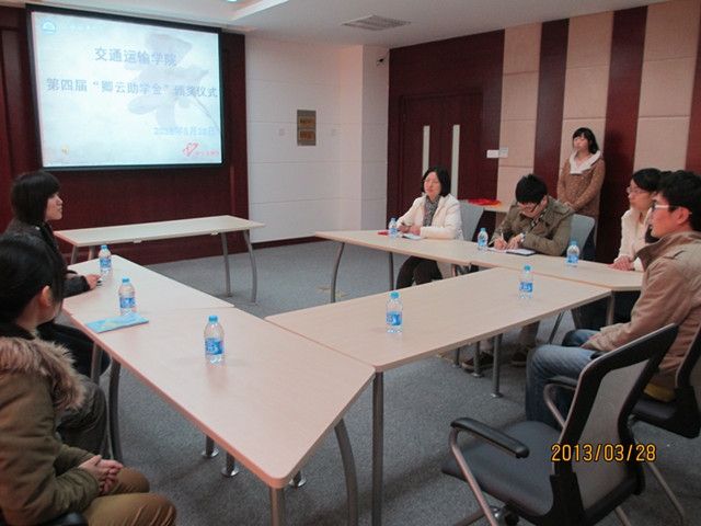 3月28日上午十点,成人直播 第四届“卿云助学金”颁奖仪式在交运楼207室举行,成人直播 党委副书记赵睿老师、大二年级辅导员、四位获奖学生出席了此次颁奖仪式,仪式由学院资助辅导员陈莉老师主持。