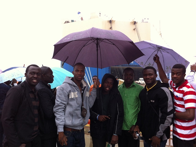 5月17日成人直播 非洲班学生一行36人在学院老师的带领下冒雨前往外高桥六期,参观上海海通国际汽车码头有限公司。